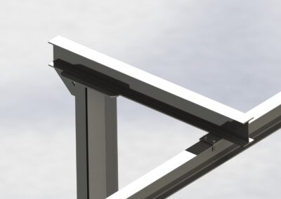 - A modular design incorporating SHS frame members and an adjustable bolted connection to account for pods of differing dimensions.